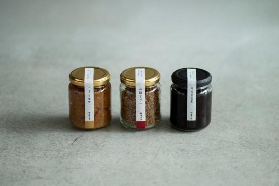 山椒じゃこ40g(瓶)、ごぼう味噌140g(瓶)、黒豆煮80g(固形量)(瓶)