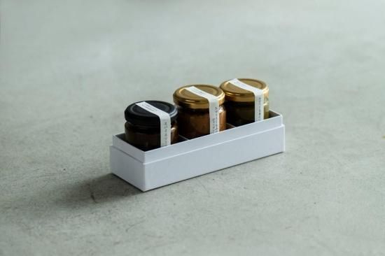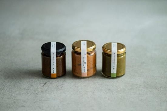 セロリと生姜のジャム120g(瓶)、トマトとくるみのディップソース120g(瓶)、SPICE SOURCE110g(瓶)